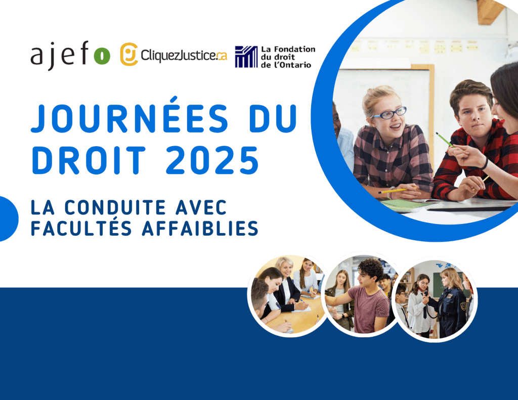 Les écoles intéressées peuvent s’inscrire à la prochaine édition des Journées du droit : https://www.ajefo.ca/a-votre-service/personnel-de-leducation/